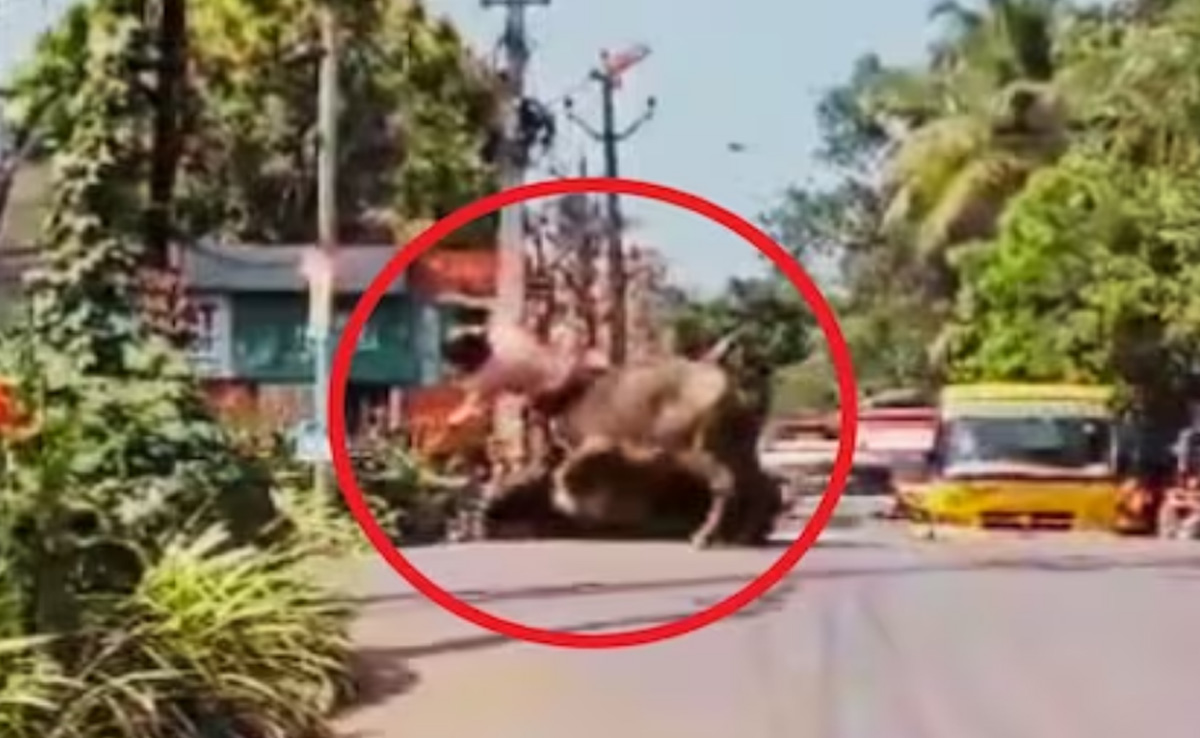 वीडियो की शुरुआत में एक भैंस बीच सड़क कर खड़ी नजर आ रही है, जिसके गले में रस्सी बंधी नजर आ रही है, जिसे देखकर अंदाजा लगाया जा सकता है कि ये पालतू भैंस होगी, जो कहीं से बीच सड़क पर आ खड़ी हुई है. इस दौरान भैंस के बगल से गुजर रहा एक स्कूटी सवार भैंस के गुस्से का शिकार हो जाता है. वीडियो में आप देखेंगे कि, कैसे स्कूटी सवार को भैंस एक ही झटके में उठाकर पटक देती है.