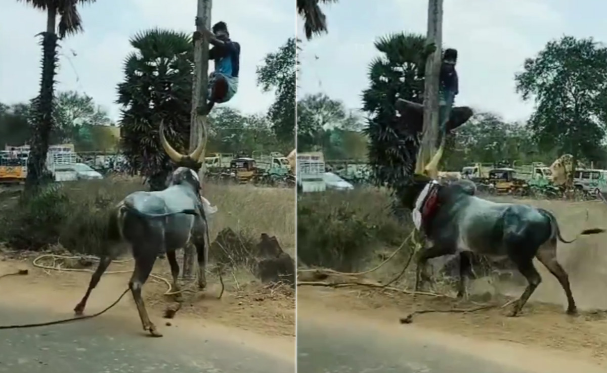 सोशल मीडिया प्लेटफॉर्म (social media platform) इंस्टाग्राम पर यह वीडियो kuttykalaivanan नाम के अकाउंट से शेयर किया गया है, जिसे खूब देखा और शेयर किया जा रहा है. इसी साल 3 मार्च को शेयर किए गए इस वीडियो को अब तक 1 लाख 84 हजार लोग लाइक कर चुके हैं. वीडियो को देख चुके यूजर्स इस पर तरह-तरह की प्रतिक्रियाएं दे रहे हैं. एक यूजर ने लिखा, 'बैल तो आज खेल कर देता.' दूसरे यूजर ने लिखा, 'शख्स की किस्मत अच्छी थी कि वो खंभे पर चढ़ गया वरना परिणाम खतरनाक हो सकता था'