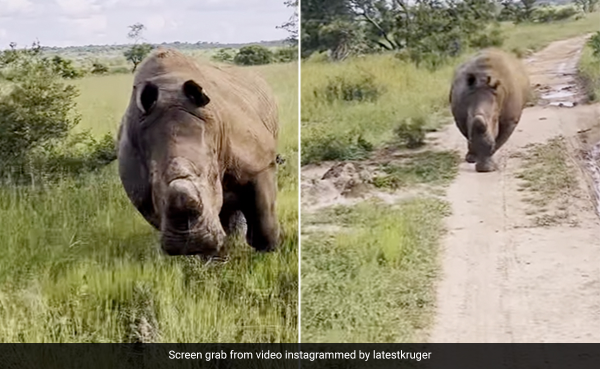 क्रूगर ने वीडियो को एक कैप्शन के साथ शेयर किया जिसमें लिखा था, ''राइनो कार सड़क पर कार पर हमला कर देता है.''
