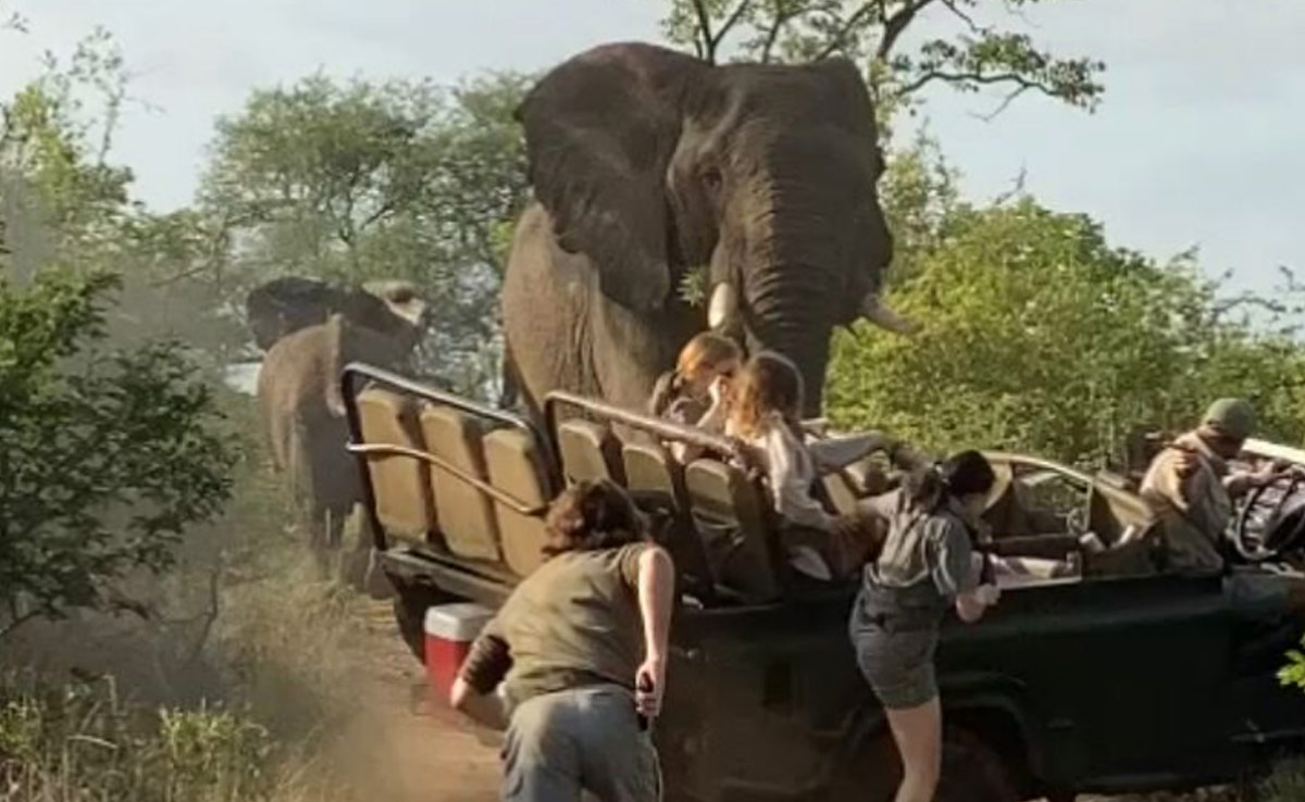 हाथी को देख टूरिस्टों के सूखे प्राण (elephant attack viral video)