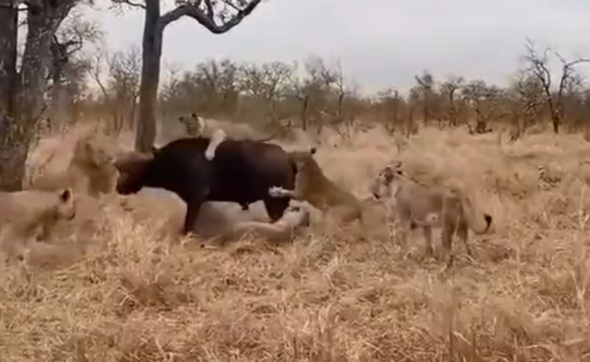 हैरान कर देने वाले इस वायरल वीडियो में कुछ शेरनियां मिलकर एक भैंस का शिकार करने की फिराक में दिखाई दे रही है. वीडियो में देखा जा सकता है कि, एक भैंस के पीछे एक या दो नहीं, बल्कि सात शेरनियां हाथ धोकर पीछे पड़ी हुई हैं, जिसनें बचने के लिए भैंस हर संभव कोशिश करती दिखाई पड़ती है. इस दौरान एक शेरनी भैंस की पीठ पर चढ़कर उसको काटने की कोशिश करती नजर आती है, तभी भैंस को मुसीबत में देख उसका एक साथी तुरंत, उसे बचाने वहां पहुंच जाता है और शेरनियों को ऐसा धोबी पछाड़ देता है कि, वो वहां से उल्टे पांव भागने को मजबूर हो जाती हैं.