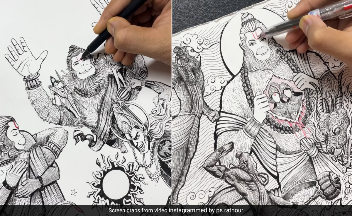 Artist Made 40 Doodle For Hanuman Chalisa: रामायण से जुड़े एक-एक किरदार लोगों के जहन में खास छाप छोड़ते हैं. भगवान श्रीराम और माता सीता की बात होती है, तो रगों में बहता खून उबाल मारने ही लगता है. यही नहीं जय श्री राम के नारों के साथ रोंगटे खड़े हो जाते हैं और जब बात पवनसुत हनुमानजी की होती है, तो मन भक्ति भाव से भर जाता है. उनके जैसा भक्त, उनके जैसा सखा पुराणों में कहीं नहीं मिलता. शायद इसलिए हनुमान जी भगवान होने के साथ-साथ एक भाव भी हैं, जो जितने सुंदर तरीके से सामने आते हैं, मन उतना ही खिल उठता है. एक भक्त ने भी अपनी कूची से हनुमान चालीसा को एक नया रूप देने की कोशिश की है. उनकी कोशिश देखकर भगवान श्रीराम और हनुमान भक्त भाव विभोर हो रहे हैं.