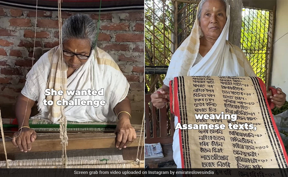 emirateslovesindia and otherground.with.sai अकाउंट से इंस्टाग्राम पर शेयर किए गए इस वीडियो में हेमप्रभा हैंडलूम पर कपड़ा बुनते नजर आ रही हैं. कपड़े पर भगवद् गीता के श्लोक संस्कृत, इंग्लिश और असमिया भाषा में नजर आ रहे हैं. वीडियो में बताया गया है कि, बुनकर में हेमप्रभा कुछ ऐसा करना चाहती थीं, जो पहले किसी ने नहीं किया हो. उन्होंने 2 साल में 250 फीट लंबे कपड़े पर संस्कृत में भगवद् गीता तैयार की. इसके बाद उन्होंने असमिया और इंग्लिश में भी भगवद् गीता के श्लोक कपड़े पर बुन दिए. हालांकि, उन्हें इंग्लिश पढ़ना नहीं आता है.