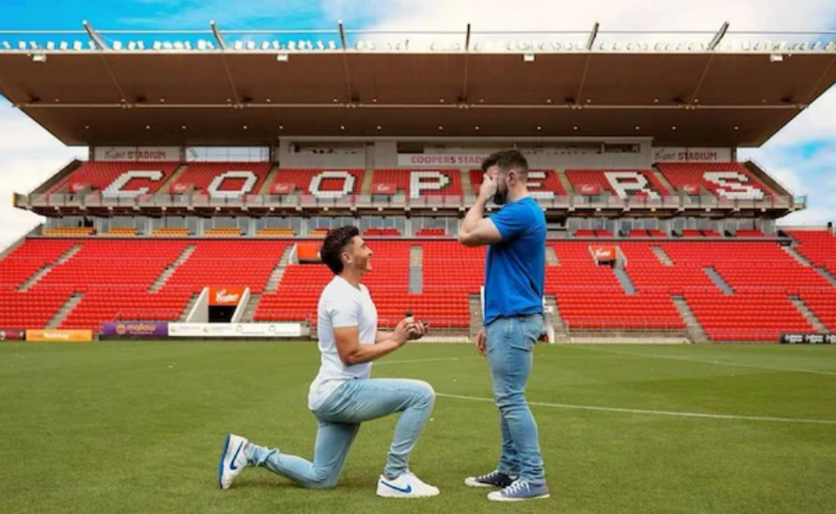 Mr and Mr coming soon: खेल के मैदान में यूं तो अक्सर अजीबोगरीब चीजें देखने को मिलती रहती है, जिनके वीडियो और फोटो सोशल मीडिया पर वायरल होने में जरा सी भी समय नहीं लगाते. हाल ही में कुछ ऐसा ही नजारा देखने को मिला ऑस्ट्रेलिया में, जहां एक फुलबॉलर खिलाड़ी ने खाली स्टेडियम में घुटने के बल बैठकर सरेआम अपने पार्टनर को प्रपोज कर दिया, जिसके बाद उनके फोटो इंटरनेट पर छा गए.