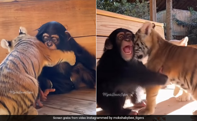 क्या ऑफिस में आपका दिन आज काफी मुश्किल रहा और क्या आप अभी सोशल मीडिया पर एक प्यारा से जानवर का वीडियो ढूंढ रहे हैं? हमारे पास आपके चेहरे पर मुस्कान लाने के लिए एक मज़ेदार क्लिप है. एक चिंपैंजी (Chimpanzee) और दो बाघ शावकों (Tiger Cubs) का एक वीडियो वायरल हो रहा है और हमें उम्मीद है कि आपके चेहरे पर भी ये वीडियो जरूर मुस्कुराहट ला देगा.