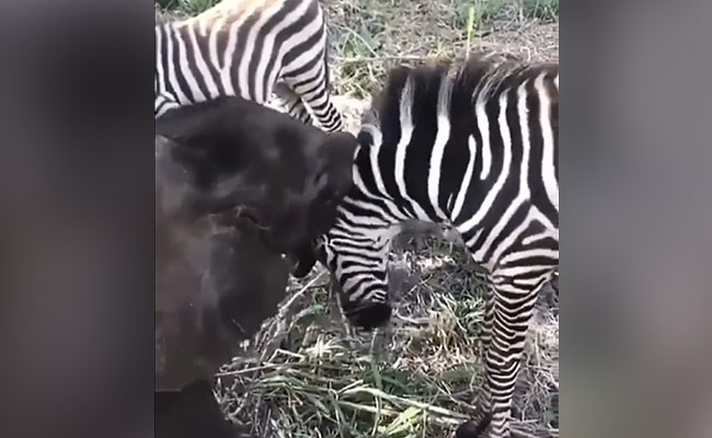बेबी एलीफेंट ने जेब्रा के साथ की मस्ती
