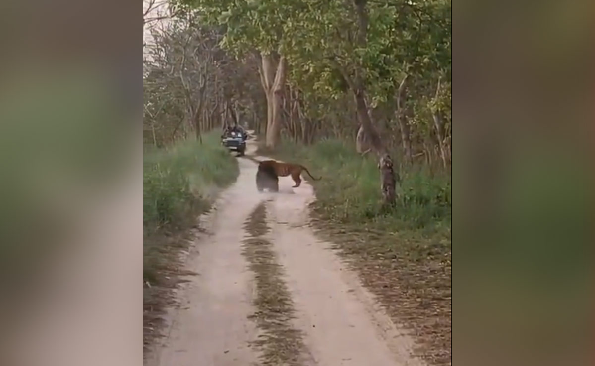 वीडियो की शुरुआत राजसी बाघिन के जंगल की सड़क पर शानदार ढंग से चलने से होती है, जबकि सफारी जीप पर पर्यटक दूर से यह दृश्य देखते हैं. अचानक भालू बाघिन का रास्ता पार करते हुए निकलता है. जवाब में, बाघिन रुक जाती है और बैठ जाती है और भालू की हरकतों को ध्यान से देखती है.