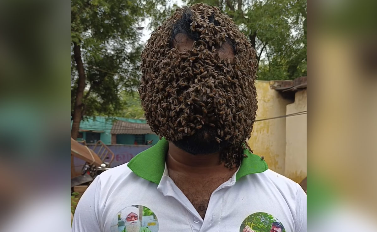 इंटरनेट पर अक्सर कई बार कुछ ऐसी तस्वीरें और वीडियो सामने आ जाते हैं, जिन्हें देखकर कई बार खुद की ही आंखों पर यकीन कर पाना मुश्किल हो जाता है. हाल ही एक ऐसा ही वीडियो लोगों को हैरान कर रहा है, जिसमें एक शख्स के चेहरे पर मधुमक्खियों का छत्ता नजर आ रहा है, जिसे देखकर लोग के मन में कई तरह के सवाल खड़े हो रहे हैं. अगर यकीन ना हो तो खुद ही देख लें वीडियो.