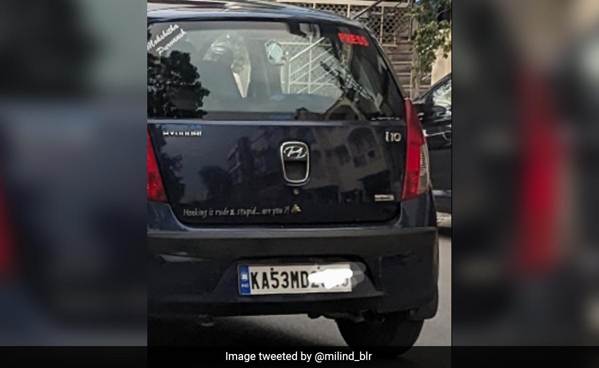 इस पोस्ट को @milind_blr नाम के यूजर ने एक्स पर शेयर किया था. इस अपरंपरागत स्टिकर ने लोगों का काफी ध्यान आकर्षित किया है, क्योंकि यह एक ऐसी भावना व्यक्त करता है जिससे शहर के कई यात्री जुड़ सकते हैं. काले रंग की Hyundai i10 के पीछे चिपका हुआ स्टिकर एक सीधा और हास्यप्रद संदेश देता है: "हॉर्न बजाना असभ्य और बेवकूफी है...क्या आप हैं?"