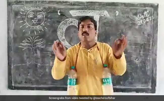 वीडियो में आप देख सकते हैं कि कैसे टीचर अपने गले में दो पानी की बोतलें टांगे हुए हैं और बच्चों को गाने की धुन पर गाकर लू से बचने के उपाय बता रहे हैं. बच्चे भी गाना सुनकर काफी खुश हो रहे हैं और तालियां बजा रहे हैं. इतना ही नहीं टीचर बोतल के साथ ही छाता लेकर भी एक्शन करने लगते हैं और बच्चों को मजेदार अंदाज़ में लू से बचने के उपाय बता रहे हैं.