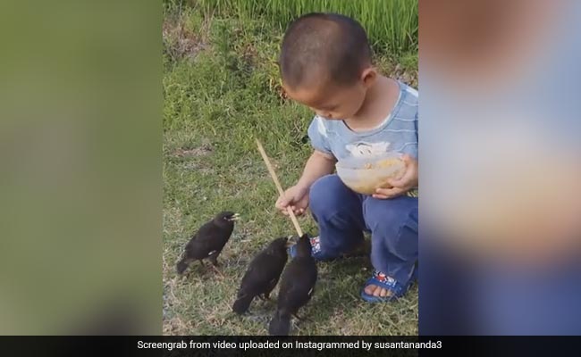 वायरल हो रहे इस वीडियो को आईएफएस अधिकारी सुसांत नंदा ने ट्विटर पर शेयर किया है. वीडियो के साथ उन्होंने कैप्शन में लिखा है- दयालुता...बच्चों को दयालु होना सिखाएं. दुनिया रहने के लिए एक अलग जगह होगी. वीडियो में आप देख सकते हैं एक चोटा सा बच्चा कटोरी में खाना लेकर बैठा है और सामने बैठी चार चिड़ियों को एक-एक करके खिला रहा है. सभी चिड़ियों ने जिस तरह से बच्चे के सामने अपना मुंह खोला हुआ है उसे देखकर यही लगता है कि सभी बहुत भूखी हैं. बच्चा भी बहुत प्यार से इन सबको खाना खिला रहा है.