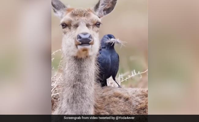 जिस तरह तिनका तिनका जोड़ कर पक्षी अपना घोंसला तैयार करते हैं. ठीक उसी तरह पेड़ों और इमारतों की छेद में कौए की प्रजाति का एक पक्षी जैकडॉ अपना घोंसला बनाता है. अपने घोसले को आरामदायक बनाने के लिए ये पक्षी घोसले में फर लगाते हैं. सोशल मिडिया पर इनदिनों एक ऐसा वीडियो वायरल हो रहा है जिसमें हिरण और जैकडॉ के बीच खास रिश्ता नजर आ रहा है. इस वीडियो में आप देख सकते हैं कि हिरण के ऊपर तीन कौवे जैसे पक्षी आपको बैठे हुए नजर आ रहे होंगे. यह सभी अपनी चोंच से हिरण के शरीर से फर निकालकर इकट्ठा करते हुए देखे जा सकते हैं. 3 पक्षी हिरण के ऊपर चढ़े हुए हैं बावजूद इसके हिरण को देखकर ऐसा लग रहा है मानो वो पक्षियों को फर इकट्ठा करने में मदद करवा रहा है. वीडियो में पक्षी और जानवर के बीच इस प्यारे से कनेक्शन को देखकर आपका दिन बन जाएगा.