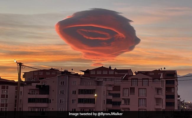 गुरुवार सुबह तुर्की (Turkey) के बर्सा में एक अज्ञात उड़ने वाली वस्तु (यूएफओ) (unidentified flying object) जैसा दिखने वाला एक दुर्लभ बादल (rare cloud formation) तैरता हुआ देखा गया. द गार्जियन के अनुसार, लगभग गोलाकार बादल, जिसे लेंटिकुलर क्लाउड के रूप में जाना जाता है, लगभग एक घंटे तक नज़र आता रहा. कई इंटरनेट यूजर्स ने इस दुर्लभ घटना को अपने फोन में कैद किया. यह सूर्योदय के समय दिखाई दिया और जिसके बीच में एक बड़ा छेद दिखाई दिया.