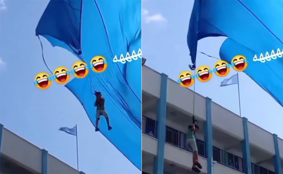 इंस्टाग्राम पर वायरल हो रहा ये वीडियो किस शहर का है, ये तो कहा नहीं जा सकता. देखने में वीडियो किसी स्कूल का लगता है, जहां किसी प्रयोजन से टेंट ताना गया होगा. स्कूली बच्चे इस टेंट की रस्सी पकड़ कर खड़े नजर आते हैं. पहला बच्चा तो रस्सी छोड़ देता है, लेकिन दूसरा बच्चा जैसे ही उस रस्सी को पकड़ता है, हवा के साथ ऊपर उठ जाता है. टेंट का कपड़ा जितनी ऊपर जाता है, बच्चा भी उतनी ही ऊंचाई तक उड़ता नजर आता है और स्कूल की चौथी मंजिल के नजदीक तक पहुंच जाता है. जब वो नीचे की तरफ आता है, तो उसके दोस्त उसके पैर पकड़ कर नीचे खींच लेते हैं.