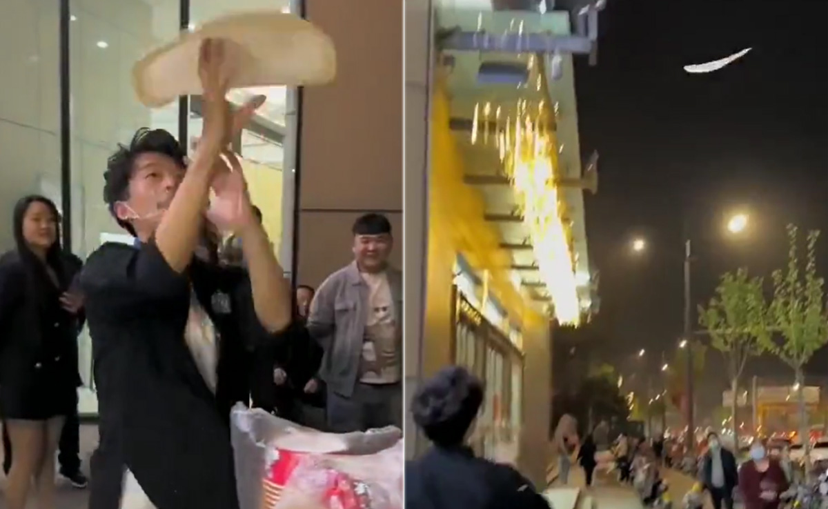 वीडियो में देखा जा सकता है कि एक शख्स बड़े ही कमाल तरीके से रोटी को हवा में उछा-उछालकर फैलाता नजर आ रहा है. वीडियो की शुरुआत में एक स्ट्रीट फूड वेंडर दिखाई दे रहा है, जिसे लोग चारों और घेरे नजर आ रहे हैं. इस दौरान शख्स खाना बनाते हुए ऐसे अनोखे स्टंट दिखा रहा है, जिसे देखकर वहां मौजूद लोग भी हक्के-बक्के रह गए. वीडियो में एक शख्स पहले तो एक रोटी को हाथ से फैलाता है और फिर उसे हवा में उछालकर उसे घूमाते हुए वापस कैच कर लेता है. वीडियो को देखकर यकीनन आप भी शख्स के इस हुनर की तारीफ करते नहीं थकेंगे.