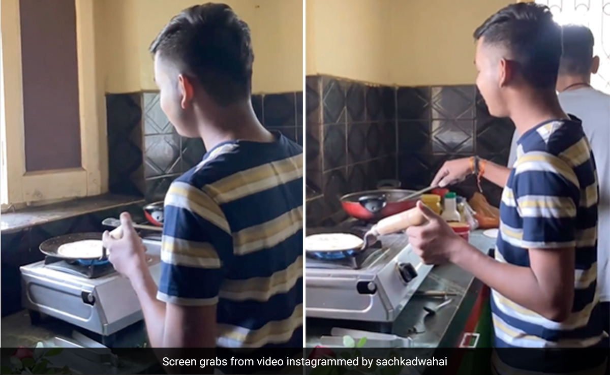 वायरल हो रहे वीडियो में आप देख सकते हैं कि एक लड़का किचन में रोटी बनाते हुए गाना गा रहा है. उसके साथ किचन में कोई दूसरा शख्स भी काम कर रहा है. लड़का गाना गाने में काफी मगन और पूरे दिल से गाना गा रहा है. लड़के की आवाज़ काफी सुरीली है. उसका गाना सुनकर ऐसा लग रहा है मानो इंडियन आइडल जैसे किसी रिएलिटी शो में परफॉर्म कर रहा हो. लड़का जितनी सुरीली आवाज़ में गाना गा रहा है उतना ही मन लगाकर वो तवे पर रोटी भी बना रहा है. किचन में मौजूद कोई तीसरा शख्स उसका वीडियो बना रहा है.