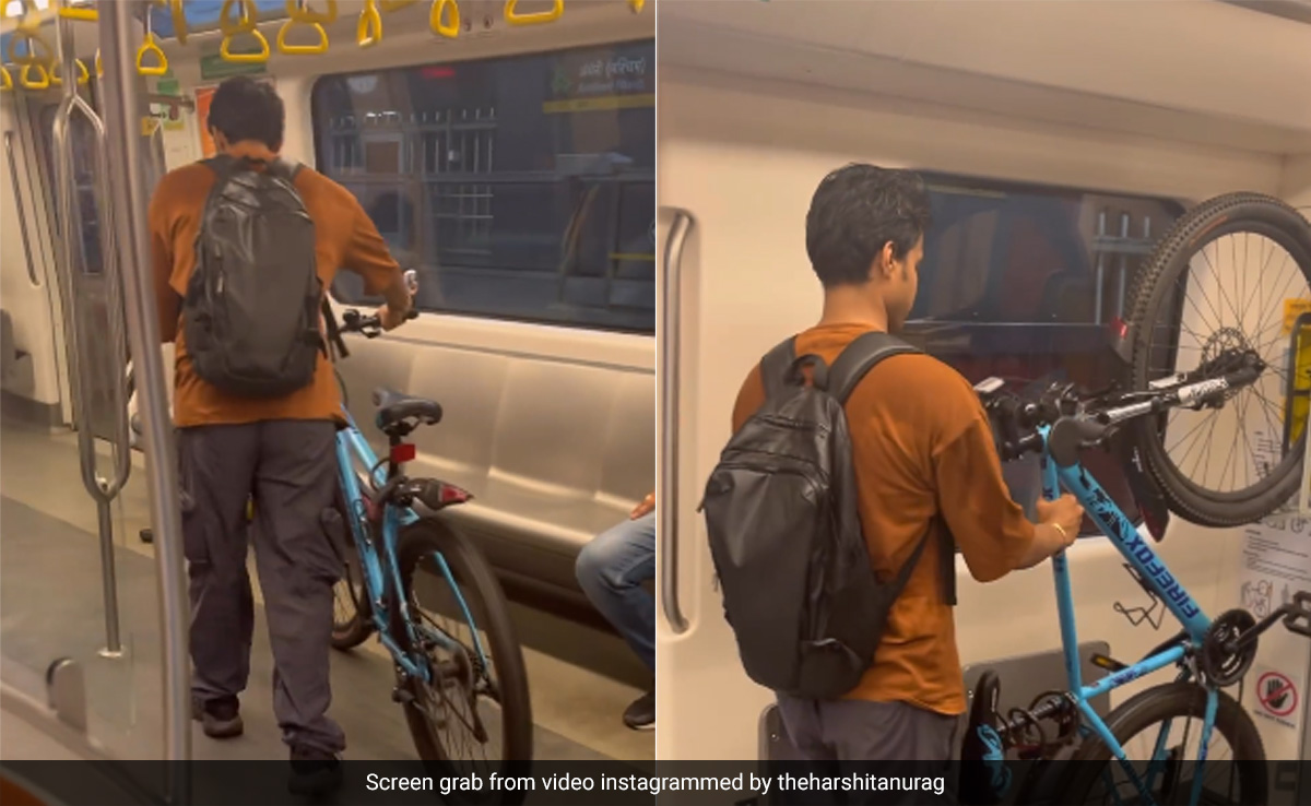 मुंबई मेट्रो (Mumbai metro) में एक अजीब वाकया देखने को मिला. एक शख्स अपनी साइकिल के साथ मेट्रो के अंदर सफर कर रहा था. इस शख्स का वीडियो सोशल मीडिया पर वायरल हो गया. दरअसल, वीडियो में देखा जा सकता है कि कैसे शख्स आराम से मेट्रो स्टेशन के अंदर साइकिल के साथ आता है फिर उसके अंदर बैठ जाता है. theharshitanurag नाम के इंस्टाग्राम यूज़र ने इस वीडियो को शेयर किया है. वायरल हो रहे इस वीडियो को देखने के बाद कई लोगों ने अपनी प्रतिक्रियाएं दी हैं.
