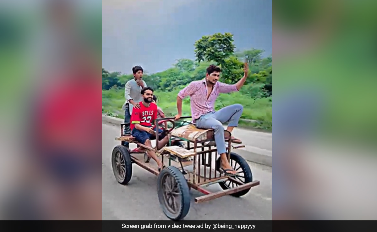 वायरल हो रहे इस वीडियो को ट्विटर पर (@being_happyyy) नाम के अकाउंट से पोस्ट किया गया है. कैप्शन में लिखा है- देसी जुगाड़ या देसी इनोवेशन? 29 सेकंड की इस क्लिप में दो लड़के और दो बच्चे जुगाड़ से बनाई गई इस गाड़ी पर बैठकर सफर का मज़ा ले रहे हैं. गाड़ी को इस तरह से मॉडिफाई किया है, जिसे देखकर आपका सिर चकरा जाएगा और आपको ये गाड़ी पसंद भी आएगी.