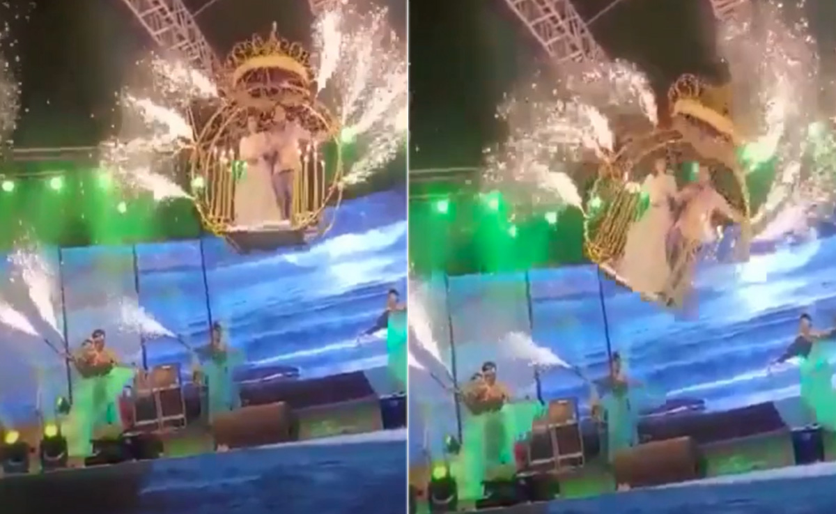 वीडियो देखने के लिए यहां क्लिक करें. इंस्टाग्राम पर शेयर हुआ वीडियो शादी के फंक्शन के दौरान का लग रहा है, जिसमें दूल्हा और दुल्हन रोप से लटकी एक ट्रॉली से एंट्री लेते हैं. ट्रॉली के चारों ओर आग की फुहारे निकलते दिखाई देते हैं, वहीं नीचे बैकग्राउंड डांसर्स भी अपनी परफॉर्मेंस के लिए खड़ी नजर आती हैं, लेकिन तभी एक हादसा हो जाता है और ट्रॉली से लटक कर एंट्री ले रहे दूल्हा-दुल्हन धड़ाम से नीचे गिर पड़ते हैं.