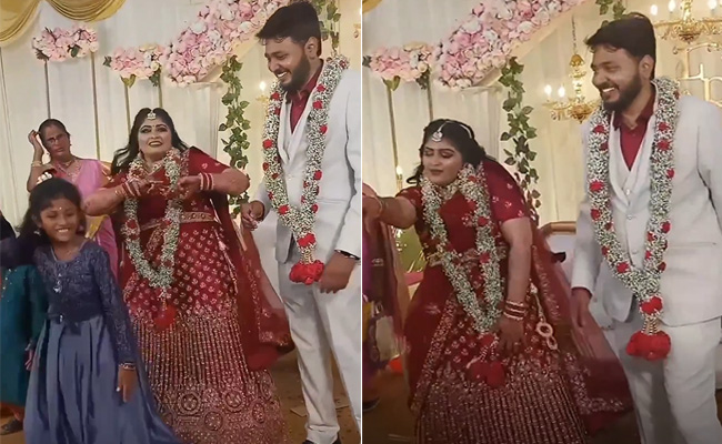 तेजी से वायरल हो रहे इस वीडियो में देखा जा सकता है कि, दुल्हन स्टेज पर ही जबरदस्त डांस करना शुरू कर देती है, जिसे दूल्हा टकटकी लगाए बस देखता ही रह जाता है. वीडियो में दुल्हन बिंदास अंदाज़ में नाचती हुई दिख रही है. वहीं दुल्हन को नाचते हुए देख बगल में खड़ा दूल्हा चाहकर भी अपनी हंसी पर कंट्रोल नहीं कर पा रहा है. वीडियो कू शुरुआत में सबसे पहले दूल्हा-दुल्हन स्टेज पर खड़े नजर आ रहे हैं, तभी एक गाना बजता है, जिसे सुनकर दुल्हन खुद पर कंट्रोल नहीं कर पाती और स्टेज पर नाचने लग जाती है. इस बीच दूल्हे के एक्सप्रेशन देखने लायक होते हैं.