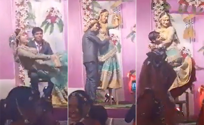 वीडियो में दुल्हन का अतरंगी डांस देखकर घराती-बाराती भी दंग रह गए. वीडियो में दुल्हन स्टेज पर दिल खोलकर ठुमके लगाती नजर आ रही है. इस दौरान दूल्हे के एक्सप्रेशन को देखकर आपकी भी हंसी छूट जाएगी. वीडियो में दुल्हन रूकने का नाम ही नहीं ले रही है. डांस करते-करते कभी वो दुल्हे की बाहों में झूल जाती है, तो कभी जमीन पर बैठ जाती है. वीडियो में आगे दुल्हन कुर्सी मंगवाकर, उस पर दूल्हे को बैठाती है और फिर खुद कुर्सी पर चढ़कर ठुमके लगाने लगती है. इस दौरान दुल्हन ऐसे-ऐसे स्टेप करती है, जिसे देखकर वहां मौजूद लोग भी अपनी हंसी कंट्रोल नहीं कर पाते. वीडियो में एक-एक कर अन्य लोग स्टेज पर आते हैं और पैसे लुटाते नजर आते हैं.