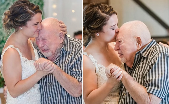 वीडियो में एक दुल्हन सफेद रंग के खूबसूरत गाउन में नजर आ रही है, जो अपने दादाजी के साथ डांस कर रही है. वीडियो के बैकग्राउंड में 'यू आर माई सनशाइन' गाना बज रहा है, जिस पर दादा-पोती नम आंखों से डांस करते नजर आ रहे हैं. वीडियो में देखा जा सकता है कि, कैसे अपनी पोती को दुल्हन के लिवाज में देखने के बाद दादाजी डांस-डांस करते-करते अचानक फूट-फूट कर रोने लगते हैं, इस दौरान वहां मौजूद लोग भी भावुक हो जाते हैं. इंटरनेट पर वायरल हो रहा यह वीडियो हर किसी को इमोशनल कर रहा है.