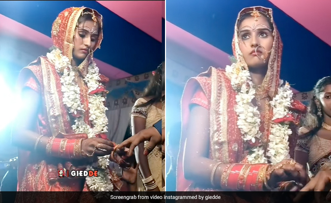 वायरल हो रहे इस वीडियो में आप देख सकते हैं शादी के दौरान स्टेज पर अंगूठी पहनाने की रस्म चल रही है. दूल्हा-दुल्हन और बाकी लोग भी स्टेज पर खड़े हैं. दुल्हन जिसकी शक्ल बिल्कुल दिशा पटानी जैसी लग रही है, उसका चेहरा काफी डरा और घबराया हुआ सा लग रहा है. वो घबराते हुए पहले दूल्हे को अंगूठी पहनाती है, फिर दूल्हा भी दुल्हन को अंगूठी पहनाता है. वीडियो में आप देख सकते हैं कि कैसे दुल्हन घबराई सी लग रही है.