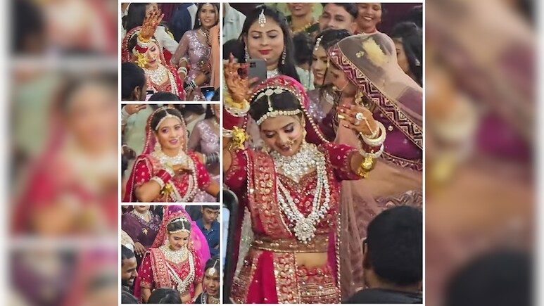 Bride Entry Dance: शादी में अगर दुल्हन की एंट्री शानदार ना हो तो, आजकल की शादियां अधूरी सी लगती हैं. आजकल दुल्हन की एंट्री के नए-नए ट्रेंड चलन में हैं. ज्यादातर लड़कियां अपनी शादी में एंट्री पर ज्यादा फोकस करती हैं. अब दुल्हन की एंट्री का एक ऐसा खूबसूरत वीडियो सामने आया हैं, जो एक्साइटमेंट से भरा हुआ है. दुल्हन की एंट्री का यह वीडियो सबसे अलग है और इसमें दुल्हन का बिल्कुल नेचुरल अंदाज देखने को मिल रहा है. यह दुल्हन अपने दूल्हे को देख इतनी एक्साइटेड हो गई कि अपनी एंट्री पर चलते-चलते ही नाचने लगी. वहीं, दुल्हन नाच ही रही थी कि अचानक कुछ ऐसा हुआ कि उसका चेहरा उतर गया.