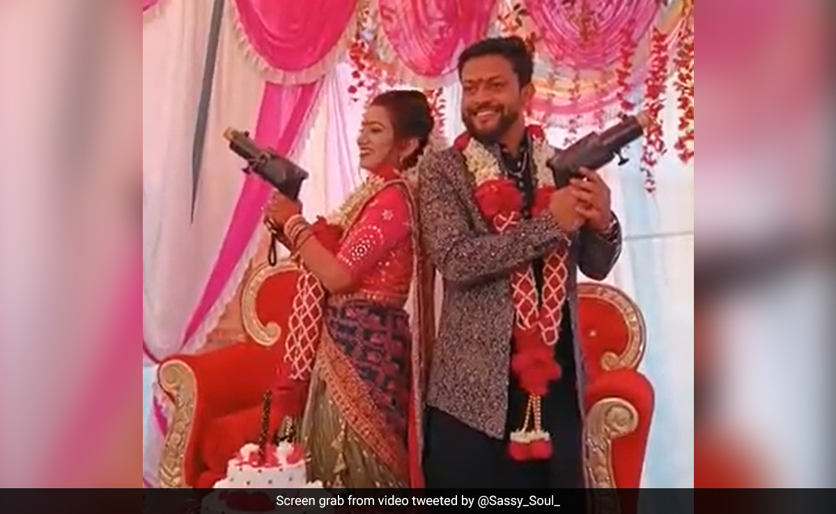 उसी का अब एक वायरल वीडियो ट्विटर पर अदिति नाम की एक यूजर ने शेयर किया है. 13 सेकंड की क्लिप में एक दूल्हा और दुल्हन को स्टेज पर पोज देते हुए देखा जा सकता है. कपल के हाथों में स्पार्कल गन थी. जैसे ही उन्होंने फायर किया, उनमें से एक बंदूक फट गई और दुल्हन के चेहरे पर जा लगी. उसने जल्दी से बंदूक गिरा दी क्योंकि हर कोई उसे बचाने के लिए दौड़ पड़ा.