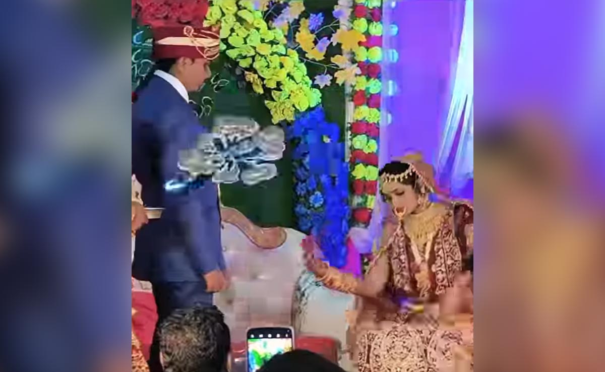 शादी के स्टेज पर सज-धज कर भारी भरकम लहंगा पहने दुल्हन अपने दूल्हे का स्वागत फूल देकर करना चाहती है. अपने दिल की बात को कहने के लिए वह हाथों में गुलाब का लाल फूल लिए एकदम फिल्मी अंदाज में भरी सभा में सभी के सामने घुटने पर बैठ जाती है. हाथ में लाल गुलाब पकड़ वह दूल्हे की ओर बढ़ती है. दूल्हा गुलाब थामने के लिए हाथ आगे बढ़ाता है और लड़की के हाथ से लेने जाता है, लेकिन तभी कहानी में ट्विस्ट आता है. दुल्हन जैसे स्टेज पर ही फ्रीज हो जाती है वह फूल को हाथ से छोड़ती ही नहीं. दूल्हा दम लगाकर फूल लेने की कोशिश करता है, लेकिन दुल्हन इसे जोर से पकड़े रहती है. ऐसे में यहां मौजूद हर कोई हैरान कर जाता है. वहीं सोशल मीडिया पर वीडियो देखने वाले लोग भी अचरज में हैं.