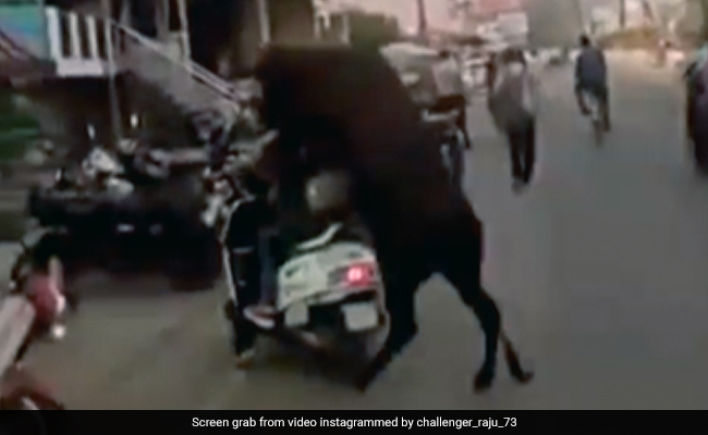 वायरल हो रहे इस वीडियो में आप देख सकते हैं एक सांड सड़क पर टहल रहा है. फिर वो सड़क किनारे स्कूटी पर बैठी दो लड़कियों की ओर जाता है और पीछे से अपने दोनों पैर उठाकर लड़कियों को बुरी तरह से लात मारता है. स्कूटी पलट जाती है और साथ में दोनों लड़कियां भी बुरी तरह से गिरती हैं और सांड उनके ऊपर चढ़ जाता है. खटरनाक वीडियो देख तो किसी के भी रोंगटे खड़े हो जाएंगे.