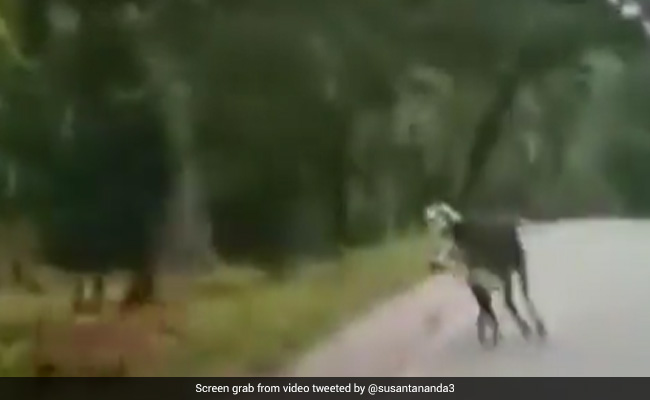 वायरल हो रहे इस वीडियो को IFS अधिकारी सुशांत नंदा ने ट्विटर पर शेयर किया है. छोटी क्लिप में एक बैल को सड़क पर दौड़ते हुए देखा जा सकता है. झाड़ियों में दुबके एक बाघ ने उसे देखा और बैल पर झपटने के लिए आगे बढ़ा. लेकिन, बैल ने बाघ को डराकर भगा दिया और अपने रास्ते पर चलता रहा. बैल के जाने के बाद बाघ को सड़क पार करते देखा जा सकता है.