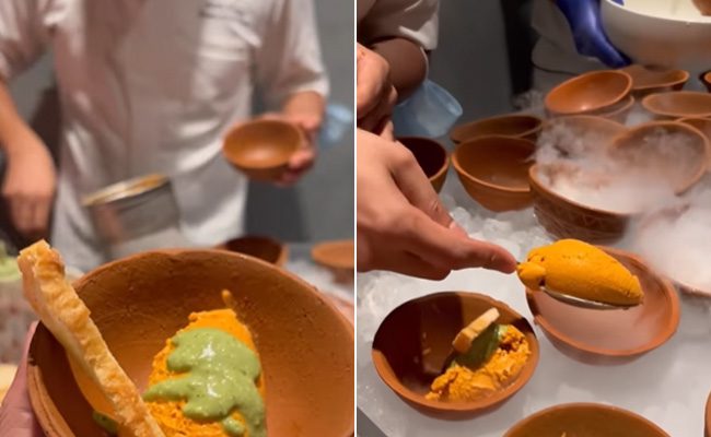 सोशल मीडिया प्लेटफॉर्म इंस्टाग्राम पर इस वीडियो को शेयर किया गया है, जिसे देखकर लोग दिमाग भन्ना रहा है. आइसक्रीम लवर्स तो मानो रेसिपी देखने के बाद सदमे में चले गए हैं. वीडियो की शुरुआत में एक शेफ एक कप में बटर चिकन प्यूरी परोसता नजर आ रहा है. इसके बाद शेफ उसके पर पुदीने की चटनी डाल देता है. वायरल हो रहे इस वीडियो को देखकर एक यूजर ने लिखा, 'इस गुनाह के लिए नरक भी नसीब नहीं होगा.' इस वीडियो को अब तक 6 हजार से ज्यादा लोग लाइक कर चुके हैं.