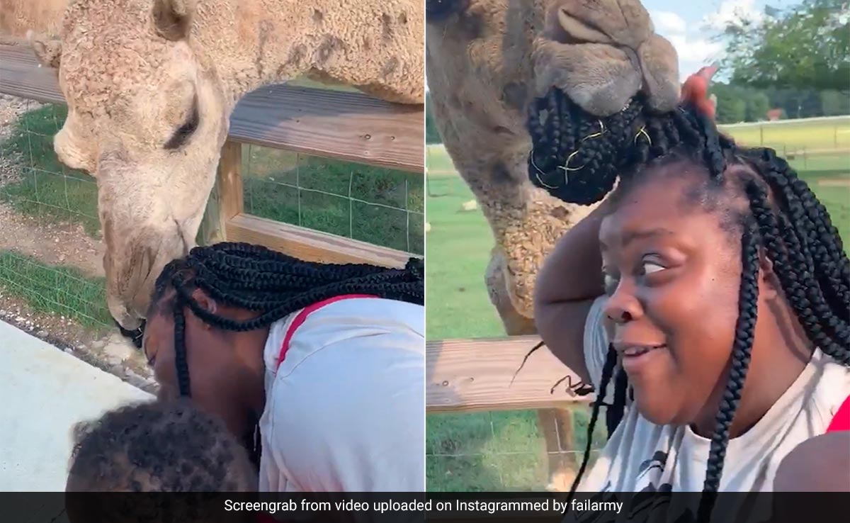 ऊंट चबाने लगा महिला के बाल