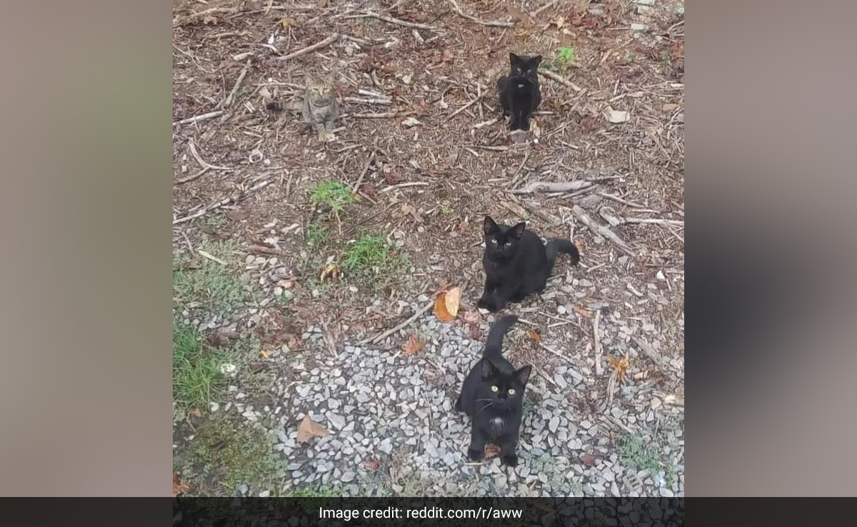 Reddit पर शेयर की गई एक पोस्ट के कैप्शन में लिखा है, "इस तस्वीर में 4 बिल्लियाँ हैं." पहली नज़र में फोटो में तीन काले रंग की बिल्लियाँ कैमरे की ओर घूरती हुई दिखाई देती हैं. लेकिन, फोटो में एक चौथी बिल्ली भी है.