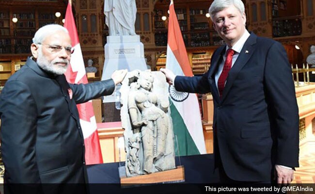 ओटावा : प्रधानमंत्री नरेंद्र मोदी की कनाडा के प्रधानमंत्री स्टीफन हार्पर से मुलाकात के दौरान हार्पर ने उन्हें खजुराहो मंदिर की मूर्ति के 900 साल पुराने एक हिस्से को भेंट किया, जो किसी वजह से कनाडा पहुंच गया था।