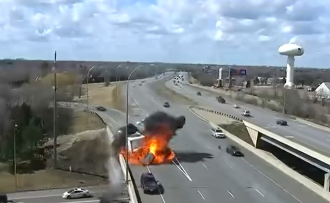अमेरिका में ब्लेन के पास हाईवे पर ट्रक और कार की टक्कर (collision between a truck and a car) में भीषण आग लग गई जो कैमरे में कैद हो गई. इस घटना का एक वीडियो अब सोशल मीडिया पर वायरल हो रहा है. वीडियो में दिखाया गया है कि एक सफेद कार रैंप पर नियंत्रण खो देती है और सीधे ट्रक के रास्ते में आ जाती है. घटना के सीसीटीवी फुटेज में कार रैंप से हाईवे की ओर जाती दिख रही है. यह नियंत्रण से बाहर लग रही थी. अचानक, कार ट्रक से टकरा गई, जिससे ट्रक चालक राजमार्ग के किनारे से टकरा गया. इसके बाद ट्रक में आग लग जाती है.