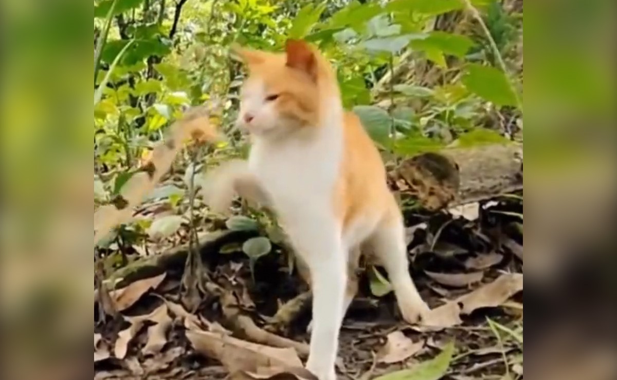 एक्स (ट्विटर) पर Historic Vids नाम के अकाउंट से शेयर हुए वीडियो में जंगल में बिल्लियों के झुंड के बीच एक जहरीला सांप आता दिखाई देता है. देखते ही देखते वह आकर एक बिल्ली को अपना शिकार बनाने के लिए उसकी ओर तेजी से बढ़ता है. अपने शरीर को ऊपर उठाकर वह बिल्ली की आंखों में आंखें डालते हुए उसे डसने की कोशिश करता है, लेकिन तभी बिल्ली अपना बचाव करती हुई तेजी से अपना पंजा मारती है और सांप को गिरा देती है. सांप दोबारा उठता है, तो बिल्ली फिर से उस पर हमला करती है और वह फिर से जमीन पर गिर जाता है.
