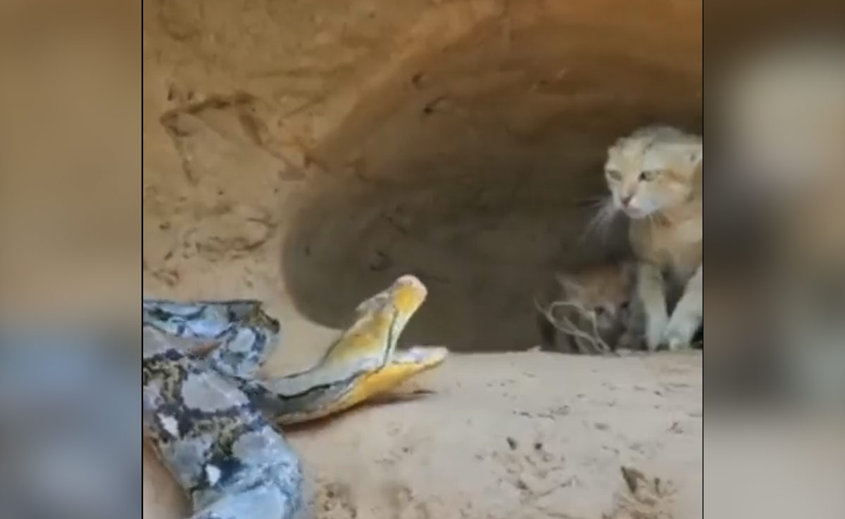 मां की तुलना किसी से नहीं कर सकते हैं. मां अपने बच्चों का ख्याल रखती हो. विषम परिस्थिति होने के बावजूद भी मां अपने बच्चों का साथ नहीं छोड़ती है. भले ही मां अपनी जान दे दे, मगर बच्चों को कभी अलग नहीं छोड़ती है. अभी हाल ही में सोशल मीडिया पर एक वीडियो वायरल हो रहा है. इस वीडियो में देखा जा सकता है कि एक खतरनाक सांप बिल्ली के बच्चे को अपना शिकार बनाने की कोशिश कर रहा था. बिल्ली को खतरे का अंदाजा हो गया था. ऐसे में बिल्ली ने सांप को झपट्टा मारने से पहले ही रोक दिया. यह वीडियो काफी खतरनाक है. इसे जिम्मेदारी के साथ देखें.