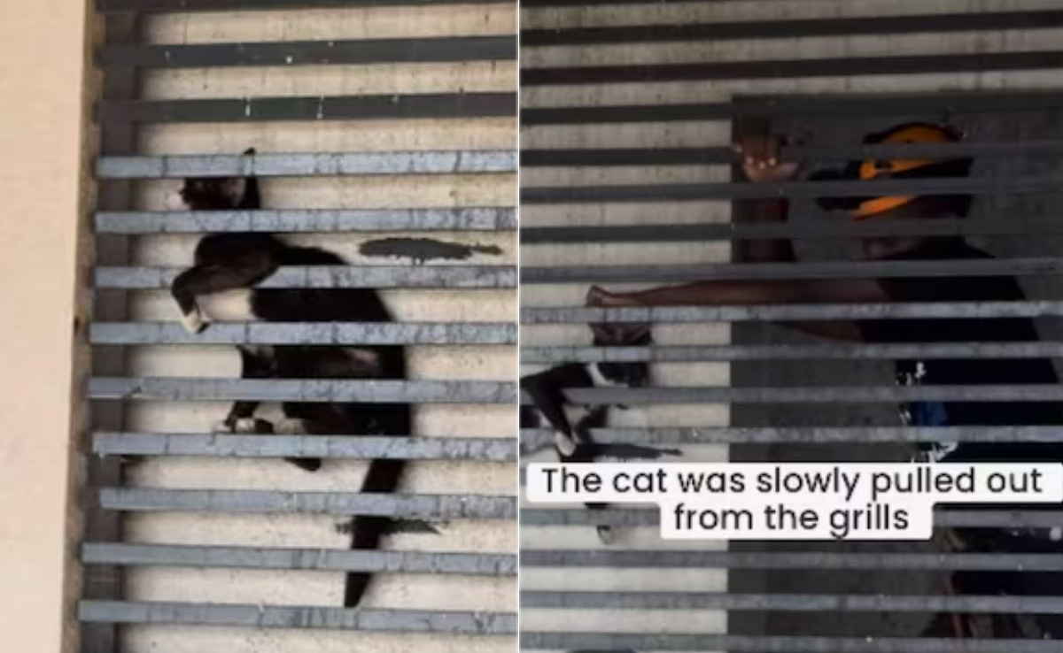 इंटरनेट पर इन दिनों एक बिल्ली के रेस्क्यू ऑपरेशन से जुड़ा वीडियो खूब वायरल हो रहा है, जो करीबन 12 घंटे से अधिक समय तक ग्रिल के बीच में फंसी रही. वायरल हो रहे इस वीडियो में देखा जा सकता है कि, एक 20 मंजिला इमारत की ग्रिल के बीच में एक बिल्ली बुरी तरह फंसी हुई है, जिसका बड़े ही नाटकीय ढंग में रेस्क्यू किया गया. वीडियो के सामने आने के बाद से ही यूजर्स रेस्क्यू टीम की तारीफ करते नहीं थक रहे हैं.