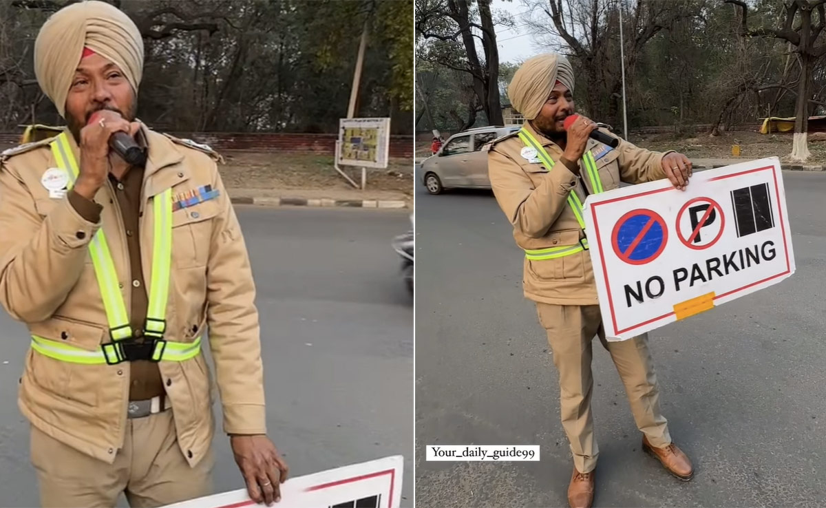वैसे तो शहर का ट्रैफिक कंट्रोल करना और उसके लिए गाड़ी चलाने वालों को लाउडस्पीकर पर निर्देश देना कोई नई बात नहीं है, लेकिन निर्देश देने का तरीका अगर चंडीगढ़ पुलिस के इस ट्रैफिक पुलिस वाले जैसा हो तो क्या कहने. ट्रैफिक पुलिस का ये जवान हाथों में माइक लेकर पार्किंग संबंधी निर्देश भी इतने सुर-ताल में दे रहा है कि, कोई इसे सुने बिना रह ही नहीं सकता. हाथों में नो पार्किंग का बोर्ड लेकर बड़े ही सुर में यहां पार्किंग न करने का ऐलान कर रहे पुलिस मैन का वीडियो इंस्टाग्राम पर खूब वायरल हो रहा है.