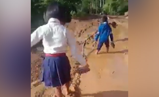 वीडियो में देखा जा सकता है कि कैसे बच्चे तमाम मुश्किलों से गुजर स्कूल पढ़ने जा रहे हैं. सोशल मीडिया पर यह वीडियो इसी दावे के साथ शेयर किया जा रहा है. इस वीडियो को सोशल मीडिया पर @th_robert नाम के ट्विटर यूज़र ने शेयर किया है. इस वीडियो को शेयर करते हुए उन्होंने जानकारी भी दी है. जानकारी में उन्होंने लिखा है- मणिपुर के चंदेल जिले के खेंगजोई क्षेत्र में अच्छी सड़क नहीं होने के कारण बच्चों को स्कूल जाने में दिक्कत हो रही है. 1980 के दौरान हमने ऐसी सड़कें देखी हैं, मगर अभी के समय में यह स्वीकार्य नहीं है. सरकार को गंभीरता के साथ इसे देखना चाहिए.