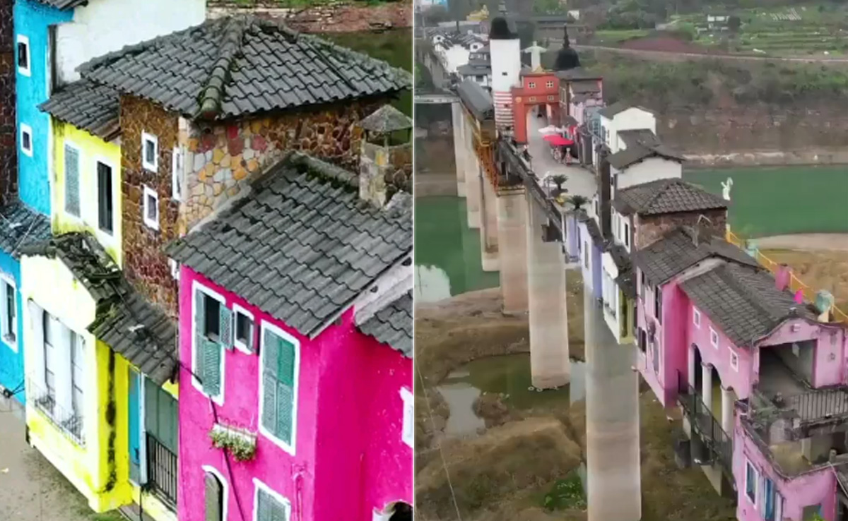 इंसानों ने कुदरत की बनाई इस दुनिया को अपने हिसाब से ढाला है. आज के समय में कई ऐसी इमारतें हैं, जिन्हें देखकर हैरानी भी होती है और लोग सोचने पर भी मजबूर हो जाते हैं. ऐसी ही इमारतों का एक वीडियो इन दिनों इंटरनेट पर सामने आया है, जो लोगों का ध्यान अपनी ओर खींच रहा है. दरअसल, यह वीडियो चाइना का बताया जा रहा है, जहां एक पुल पर कई घर एक लाइन में दिखाई दे रहे हैं. हैरानी की बात तो ये है कि, इस पुल पर गाड़ियां नहीं चलती, बल्कि गाड़ियों की जगह यहां फैले घर लोगों का ध्यान अपनी ओर खींचते हैं.