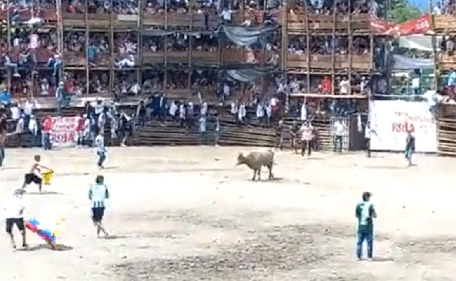हाल ही में कोलंबिया में एक दर्दनाक हादसा हुआ, जहां बुलफाइट का लुत्फ उठाने के लिए स्टेडियम में मौजूद लोग एक बड़े हादसे का शिकार हो गए. दरअसल, कोलंबिया के टोलिमा राज्य के एल स्पिनल शहर में बुलफाइट के दौरान एक लकड़ी का तीन मंजिला स्टेडियम बनाया गया था. जहां पर 800 से ज्यादा लोग बैठे हुए थे. इस दौरान हादसा हुआ और लकड़ी का ये स्टेडियम ढह गया, जिससे चार लोगों की मौत हो गई है और 300 से ज्यादा लोग घायल हुए हैं. इस घटना के बाद की कई सारे विडियो वायरल हो रहे हैं, जिसमें से एक वीडियो इनदिनों तेजी से वायरल हो रहा है.