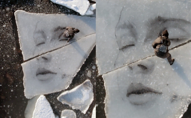Portrait on Ice Viral Video: दुनियाभर में ऐसे कई लोग हैं, जो अपने गजब के टैलेंट और हुनर के चलते सोशल मीडिया पर छाए रहते हैं. इनमें से कुछ वीडियोज इतने कमाल के होते हैं कि, जिन्हें जितनी बार भी देखो उतना कम है. हाल ही में एक ऐसा ही शानदार वीडियो इंटरनेट पर देखने को मिल रहा है, जिसमें आर्टिस्ट की कलाकारी देखकर आप भी 'दांतों तले उंगली दबा' लेंगे. वायरल हो रहे इस कमाल के वीडियो में एक शख्स को पानी पर तैरती बर्फ की चादर पर पोर्ट्रेट बनाते देखा जा सकता है.