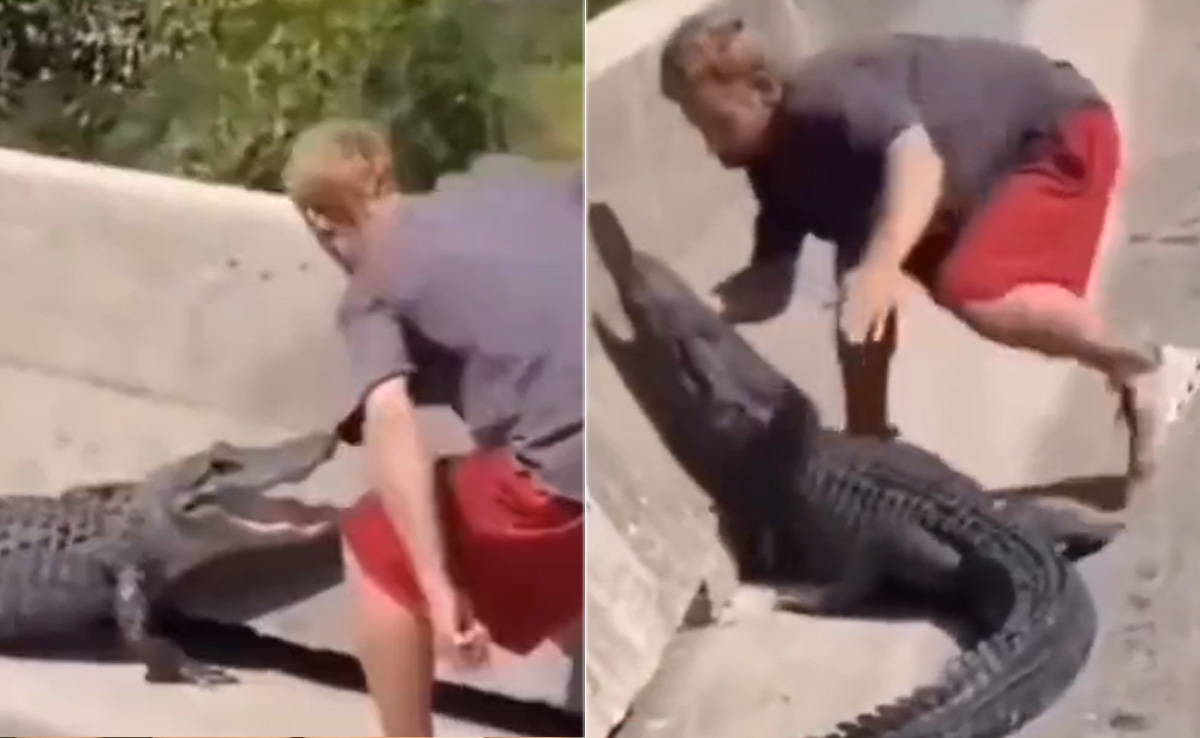 वीडियो में देखा जा सकता है कि, कैसे रोड पर मंडराते एक मगरमच्छ के सामने एक लड़का हीरोबाजी करता नजर आ रहा है. वीडियो को देखकर समझा जा सकता है कि, लड़का खुद खतरे को मोल ले रहा है. वीडियो में लड़के के परेशान करने के बाद मगरमच्छ गुस्से से आग बबूला हो जाता है और लड़के पर हमला बोल देता है. वीडियो में मगरमच्छ लड़के के पैर को अपने जबड़े में दबाता नजर आ रहा है, जिसके बाद लड़का जमीन पर गिर जाता है और खुद को मगरमच्छ के जबड़े से छुड़ाने के लिए झटपटाने लगता है.