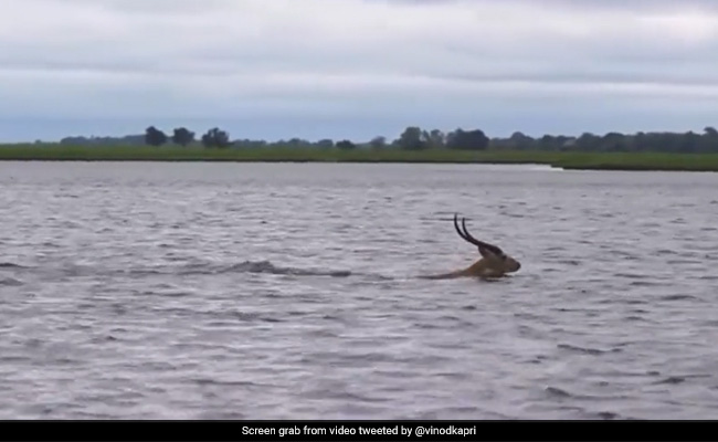 फिल्म निर्माता विनोद कापड़ी (Filmmaker Vinod Kapri) ने सोमवार को ट्विटर पर एक हैरान कर देने वाला दिलचस्प वीडियो शेयर किया. वायरल क्लिप में, एक मगरमच्छ (crocodile) को पानी में हिरण (antelope) का पीछा करते हुए देखा जा सकता है, जब वह नदी पार कर रहा था. निर्देशक के अनुसार वीडियो का अंत हैरान कर देने वाला था और आपको इसे जरूर देखना चाहिए.