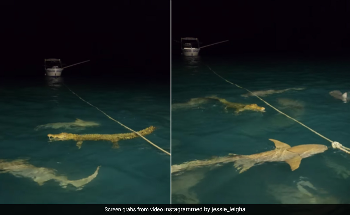 एक चौंकाने वाले वीडियो में वह पल कैद हो गया जब एक अकेला मगरमच्छ (Crocodile) शार्क के एक समूह (Group of Sharks) से घिर गया. इंस्टाग्राम पर शेयर किए गए वीडियो में न केवल दिखाया गया है कि मगरमच्छ ने शार्क से कैसे लड़ाई की, बल्कि यह भी दिखाया गया कि अंत में वह विजेता कैसे बना.