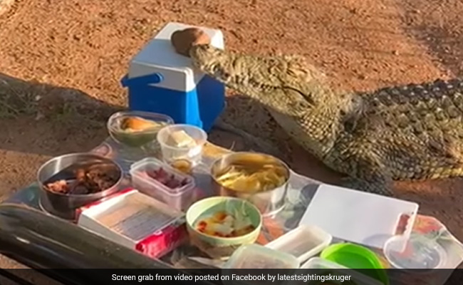 ट्रैवल कंपनी लेटेस्ट साइटिंग्स के एक पोस्ट के अनुसार, एक जिज्ञासु मगरमच्छ (crocodile) प्रकृति प्रेमियों के एक समूह के पास आता है, जब वे पिकनिक मना रहे होते हैं, और तरल पदार्थ से भरे एक आइस बॉक्स को चुरा लेता है.