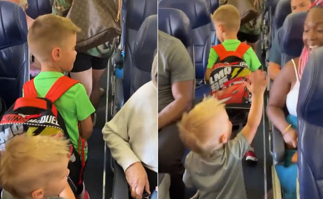 Kid Says Hi To Every Passenger On Plane: अक्सर यात्रा के दौरान साथ यात्रा करने वाले यात्रियों से घुलने-मिलने में थोड़ा वक्त लगता है. कई बार ऐसे लोग साथ में सफर कर रहे होते हैं, जो पूरे रास्ते मुंह बनाए रखते हैं और एक भी शब्द नहीं बोलते. ऐसे में बच्चों के साथ सफर करना आसान बात नहीं है, सफर के समय अक्सर बच्चे चिढ़चिढ़े या फिर किसी चीज को लेकर चीज जिद्द करते नजर आते हैं, लेकिन कई बार खुश भी नजर आते हैं और अपने साथ-साथ दूसरे के चेहरे पर भी मुस्कान (Positive videos) ले आते हैं. हाल ही में एक ऐसे ही क्यूट से बच्चे (cute kid in plane video) का वीडियो वायरल हो रहा है, जो सफर से पहले कुछ ऐसा कर देता है, जिसे देख वहां मौजूद हर यात्री का दिल खुश हो जाता है.
